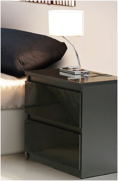 LOUISE 2 DRAWER BLACK GLOSS BEDSIDEFREE UK DELIVERYFREE UK DELIVERY