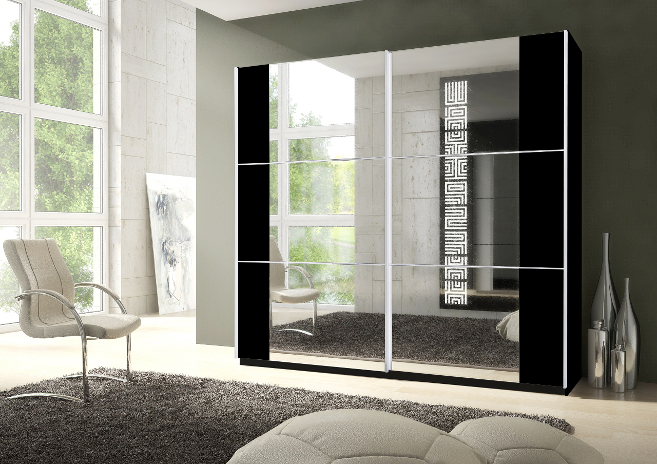 MEMPHIS LARGE MIRRORED SLIDING WARDROBE BLACKFREE UK DELIVERYFREE UK DELIVERY