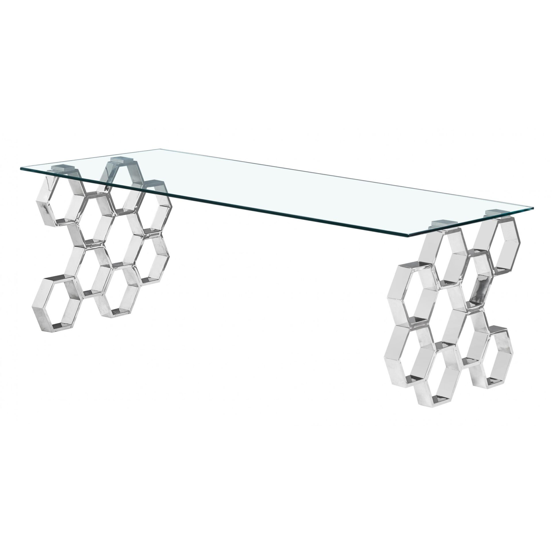Quetta Silver Clear Glass Coffee Table 1000W x 500D x 450H